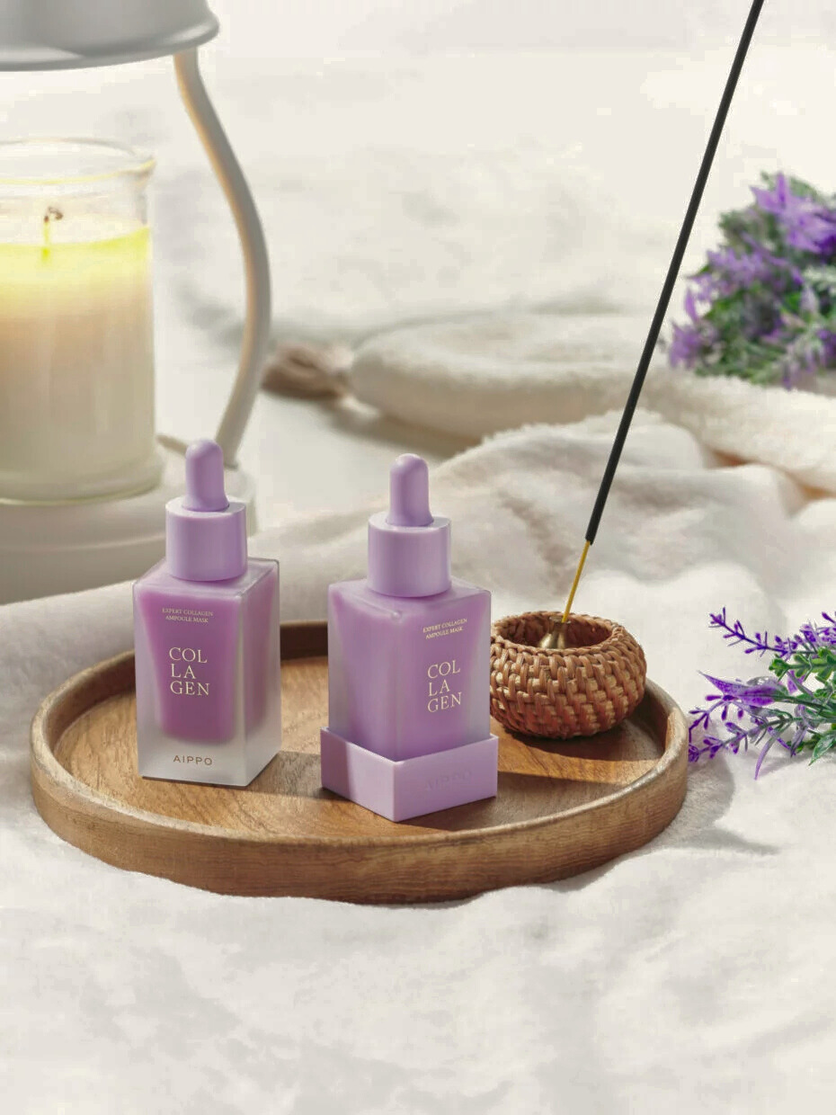 Ampułka-maska z kolagenem i lawendą, która intensywnie nawilża i ujędrnia.
